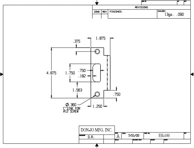 DON-JO EH 161 ASA Strike, 4 7/8" x 1 1/4", Ferrous Material