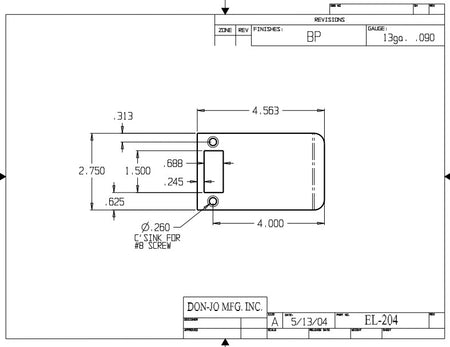 DON-JO EL 204 Extended Lip Strike, 2-3/4" x 4", Ferrous Material