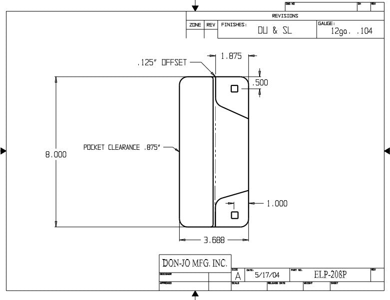DON-JO ELP 208P EBF Latch Protector For Use With Electric Strikes, 3 1/2" x 8", Steel Material