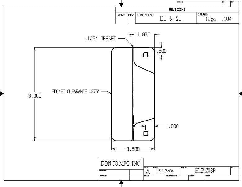 DON-JO ELP 208P Latch Protector For Use With Electric Strikes, 3 1/2" x 8", Steel Material