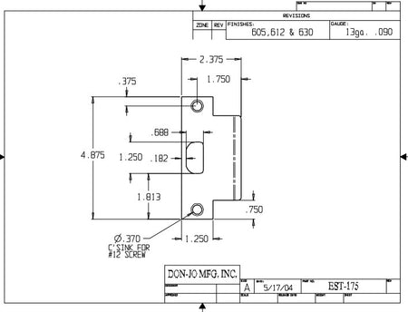 DON-JO EST 175 Extended Lip ASA Strike, 4 7/8" x 1 3/4"
