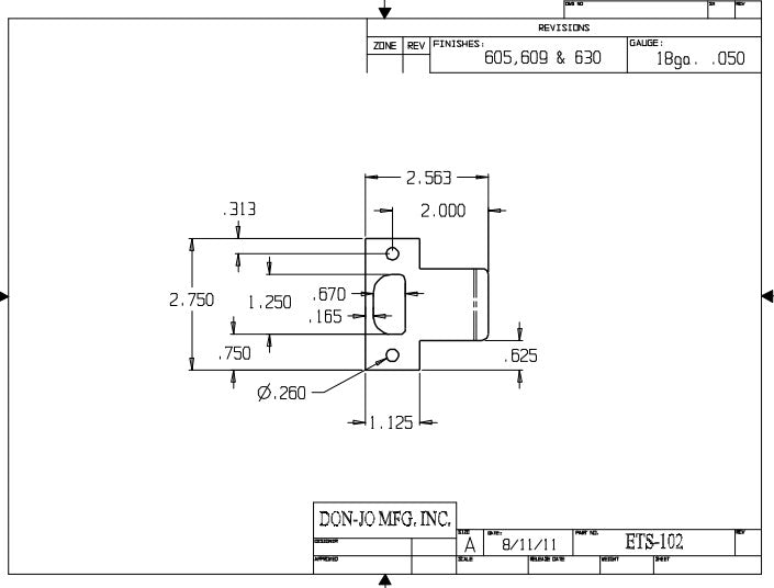 DON-JO ETS 102 Extended Lip T Strike, 2 3/4" x 2", Non Ferrous Material