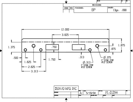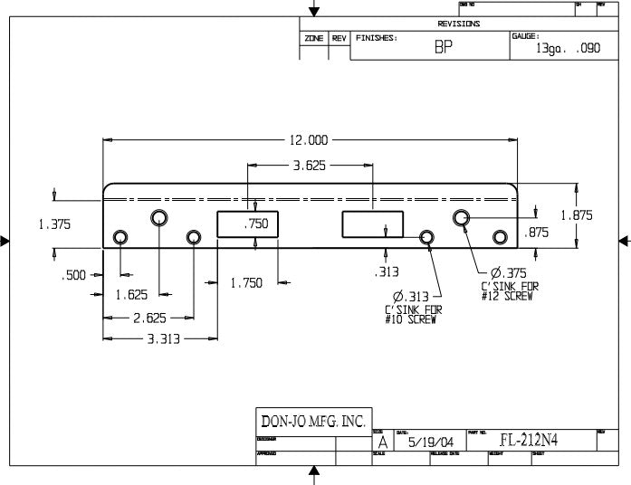 DON-JO FL 212N4 Security Strike, 12" x 1-3/8" Ferrous Material