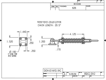 DON-JO HDCC 2012 Heavy Duty Crash Chain 20-1/2", Steel Material