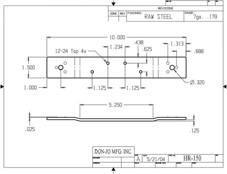 DON-JO HR 150 Hinge Reinforcement 10"x 1-1/2", Steel Material