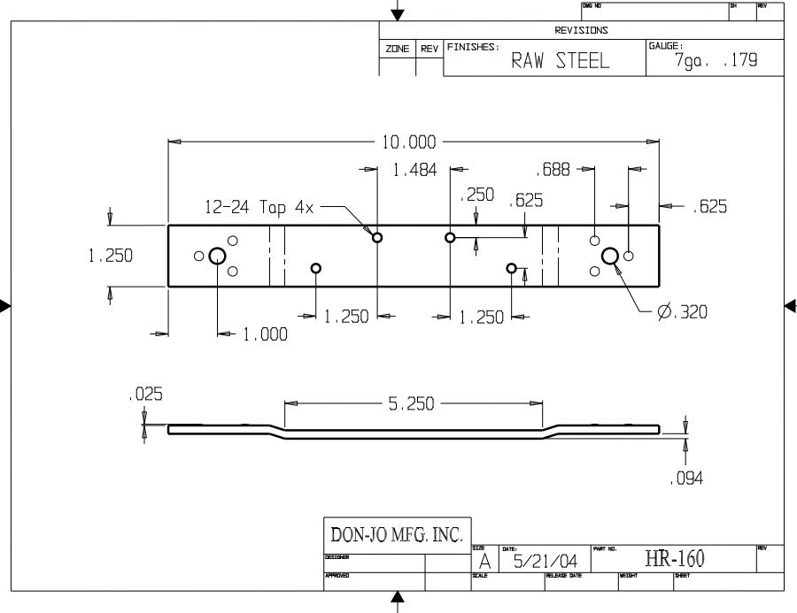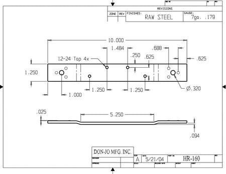 DON-JO HR 160 Hinge Reinforcement 10"x 1-1/4", Steel Material