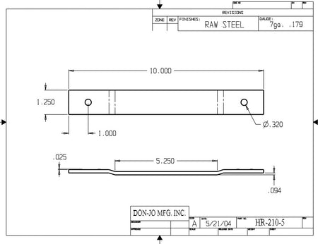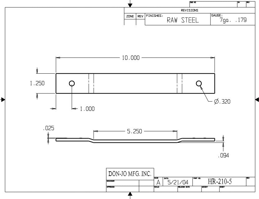 DON-JO HR 210 5 Hinge Reinforcement 10"x 1-1/4", Steel Material