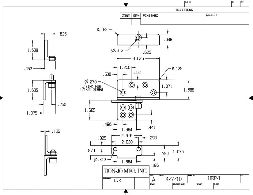 DON-JO HRP 1 Reinforcing Pivot 3/4" Offset, Steel Material, Satin Chrome Finish