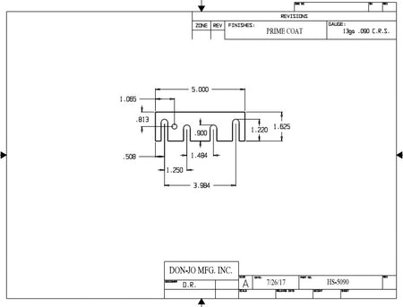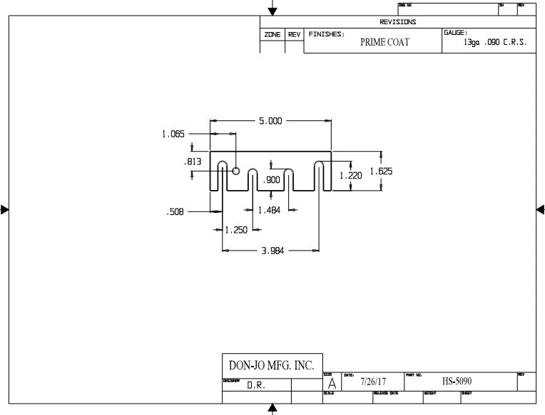 DON-JO HS 5090 Hinge Shim 5"x 1-5/8", Steel Material