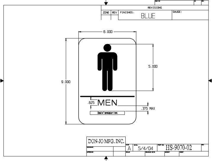 Don-jo HS-9070-02 ADA Sign Mens Room, Blue Finish, Plastic Material