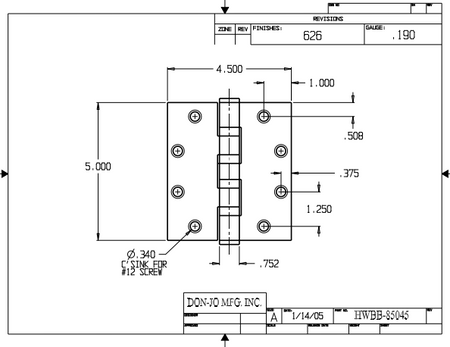 DON-JO HWBB85045 Heavy Weight 5" x 4 1/2", Brass Material, Satin Chrome Finish