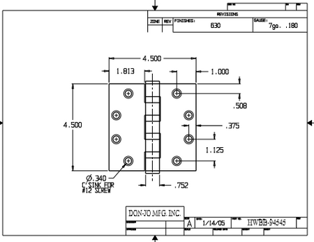 DON-JO HWBB94545 Heavy Weight 4 1/2" x 4 1/2", Stainless Steel Material, Satin Stainless Finish