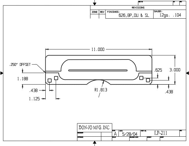 DON-JO LP 211 Special Fasteners for Outswing Doors, 3" x 11", Steel Material