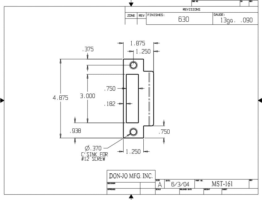 DON-JO MST 161 ASA Strike, 4 7/8" x 1 1/4" Non Ferrous Material
