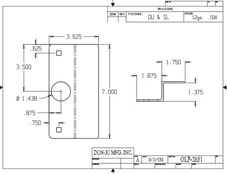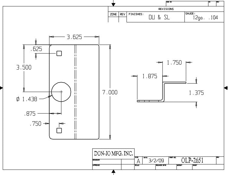 Don-jo OLP 2651 Latch Protector For Center Hung Outswing Aluminum Doors, 2 5/8" x 6 1/2" Steel Material