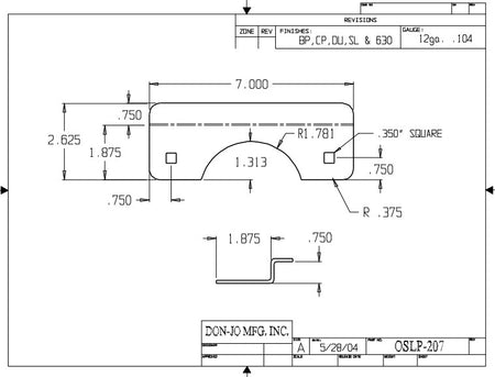 DON-JO OSLP 207 Special Fasteners 3/4" Offset For Outswing Doors, 2 5/8" x 10" Steel Material
