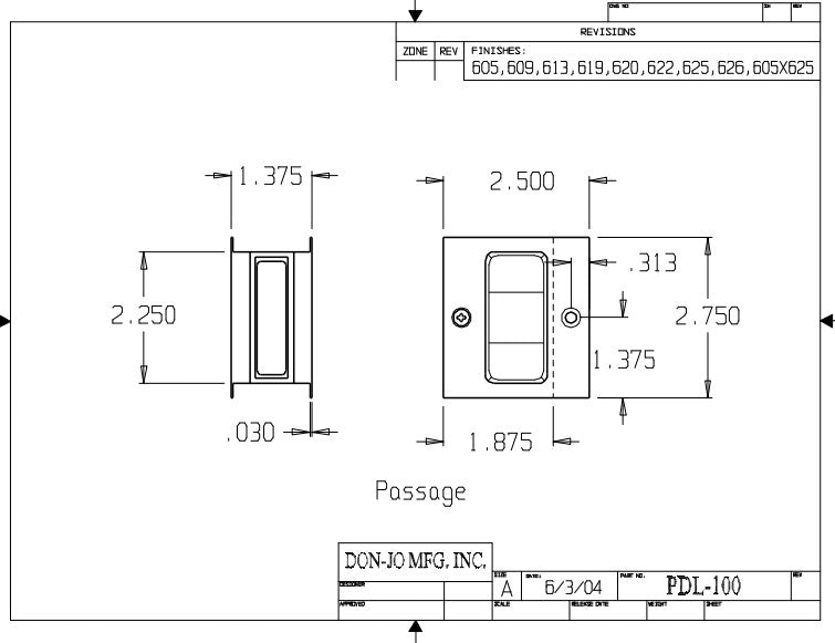 DON-JO PDL 100 Pocket Door Lock Passage, Brass Material