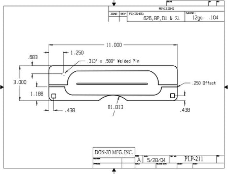 DON-JO PLP 211 EBF Pin Latch Protectors For Outswing Doors, 3" x 11" Steel Material