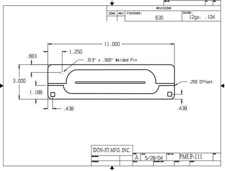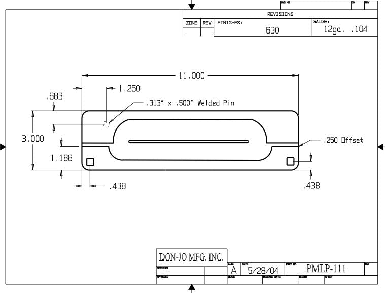 DON-JO PMLP 111 Pin Latch Protectors For Outswing Doors, 3" x 11" Stainless Steel Material