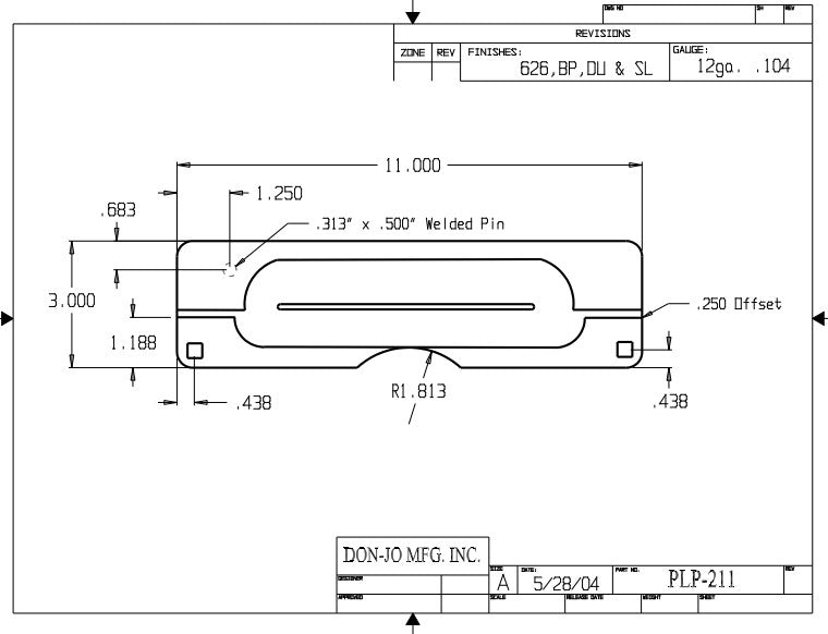 DON-JO PMLP 211 Pin Latch Protectors For Outswing Doors, 3" x 11" Steel Material