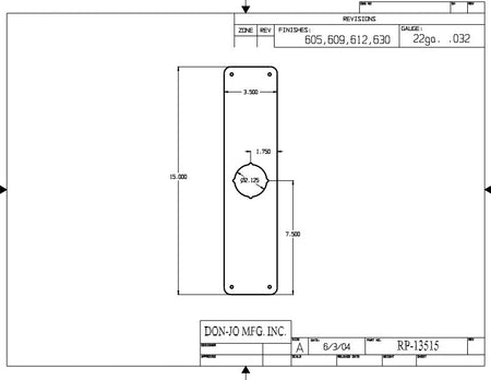 DON-JO RP 13515 Remodeler Plate, 15" x 3-1/2", 0.032 Gauge