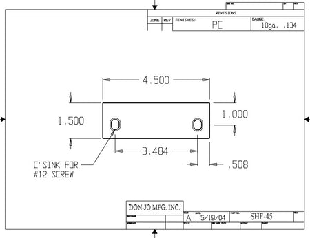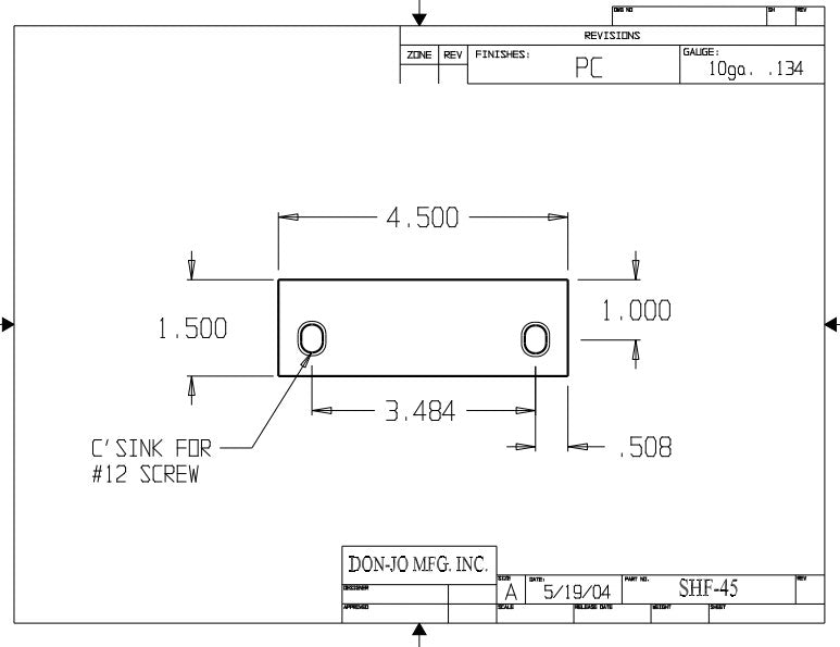 DON-JO SHF 45 Hinge Filler Plate 4-1/2"x 1-1/2", Steel Material