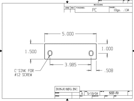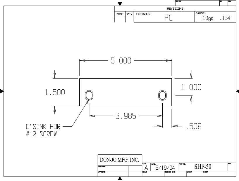 DON-JO SHF 50 Hinge Filler Plate 5"x 1-1/2", Steel Material