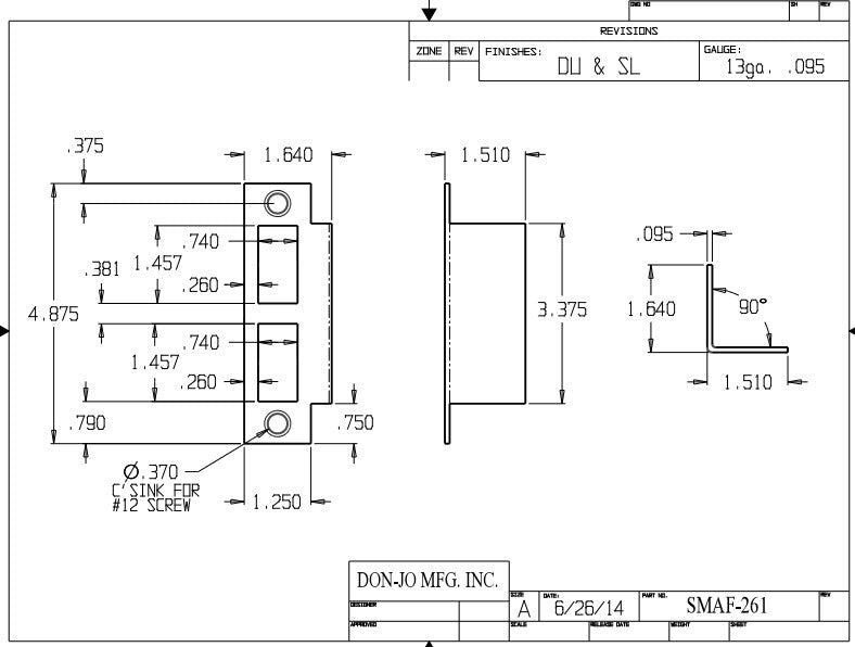 Don-jo SMAF 261 Electric Strike Filler Plate 4-7/8" x 1-1/4", Steel Material
