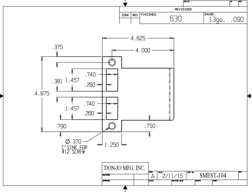 DON-JO SMEST 104 Extended Lip ASA Strike, 4 7/8" x 4" Non Ferrous Material