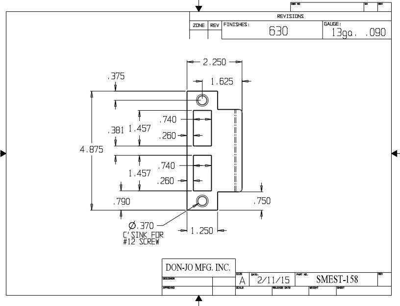 DON-JO SMEST 158 Extended Lip ASA Strike, 4 7/8" x 1 5/8" Non Ferrous Material
