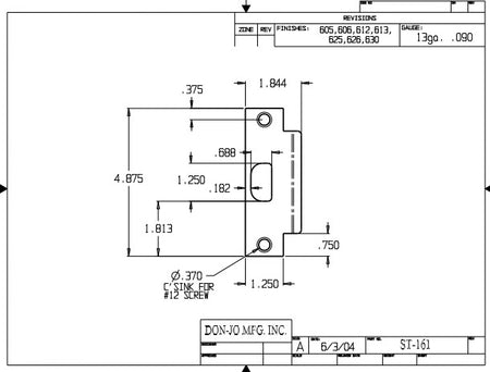 Don-jo ST 161 ASA Strike, 4 7/8" x 1 1/4" Non Ferrous Material