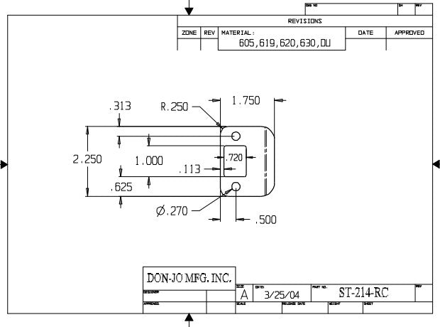 DON-JO ST 214 RC Replacement Strike, 2 1/4" x 1 1/4" Non Ferrous Material
