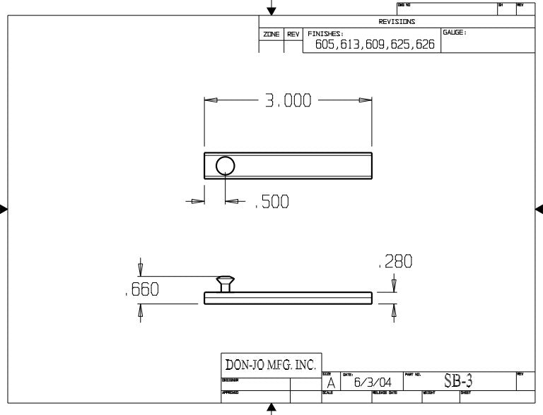 Don-jo SB 3 Slide Bolt, 3" x 5/8", Brass Material