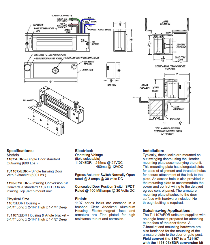 1107xEDR - Single Door standard Outswing (600 Lbs.)