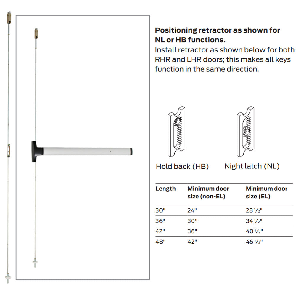 Falcon 1694-NL-P/HB-P Night Latch/Hold Back with Rim Cylinder and 9970 Pull - Concealed Vertical Rod Exit Device Pushpads