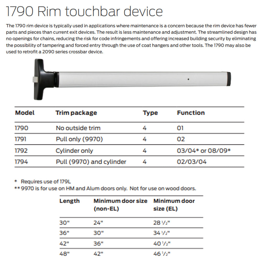 Designed for demanding commercial and institutional environments, the Falcon 1790 Series Rim Exit Device is the go-to solution when durability and ease of maintenance are a top priority. Unlike more complex exit devices, the 1790 features a streamlined rim design with fewer internal components—minimizing upkeep, reducing adjustment needs, and improving long-term performance.