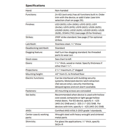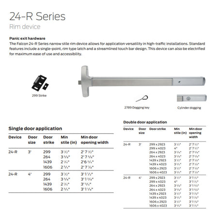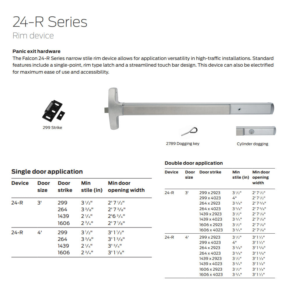 DESCRIPTION TAG: Falcon 24-R EO Narrow Stile Rim Exit Device. Free Shipping On Orders Over $189. Order Today! Ideal For Offices, banks, assisted living facilities, retail stores and other commercial buildings that have constant traffic, so