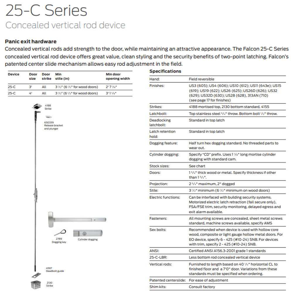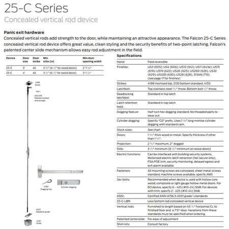 TITLE TAG: Falcon 25-C-EO Series Exit Only - Concealed Vertical Rod Device