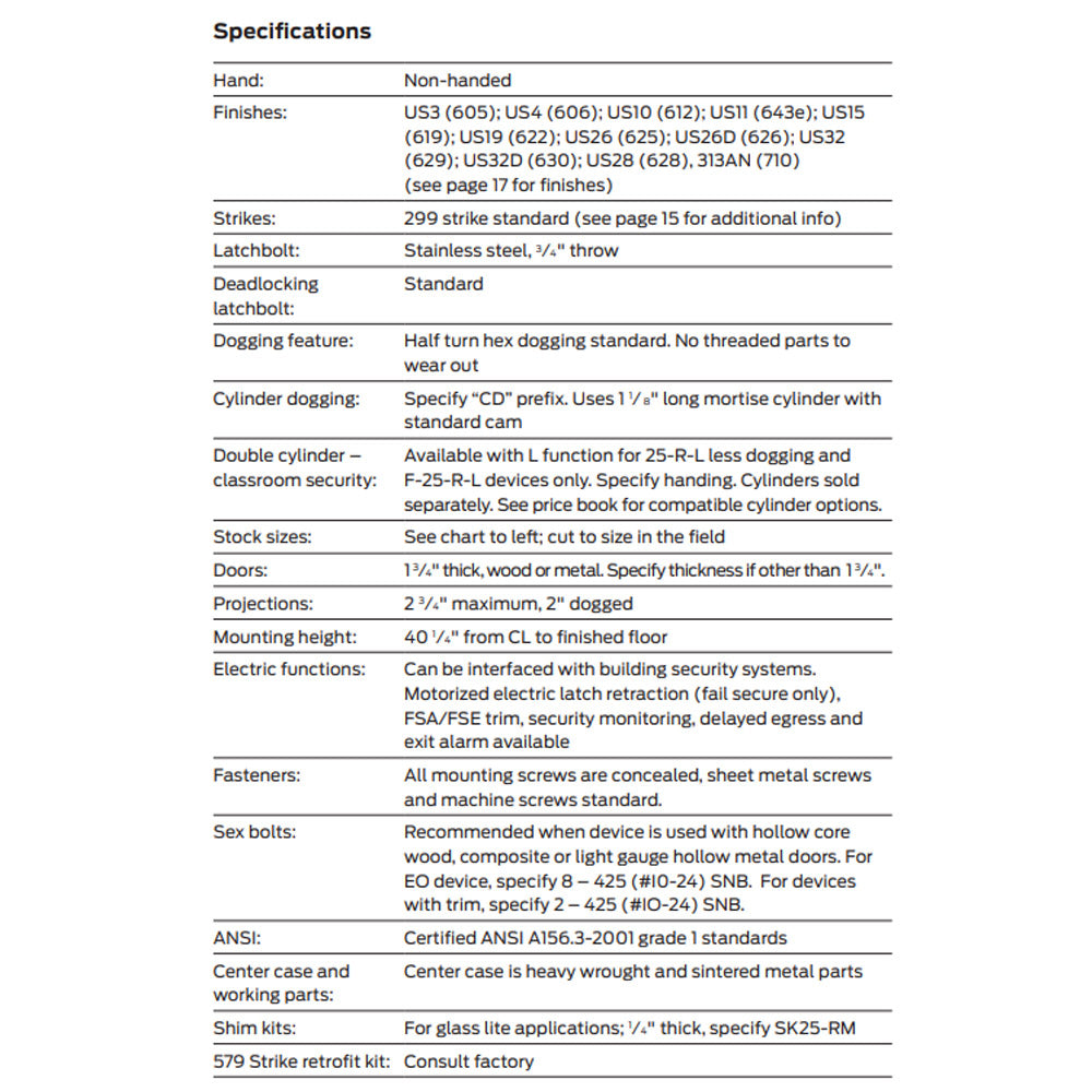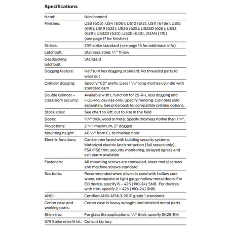 • Available in Rim, Surface Vertical (SV), Concealed Vertical (CV), and Mortise (M) configurations
