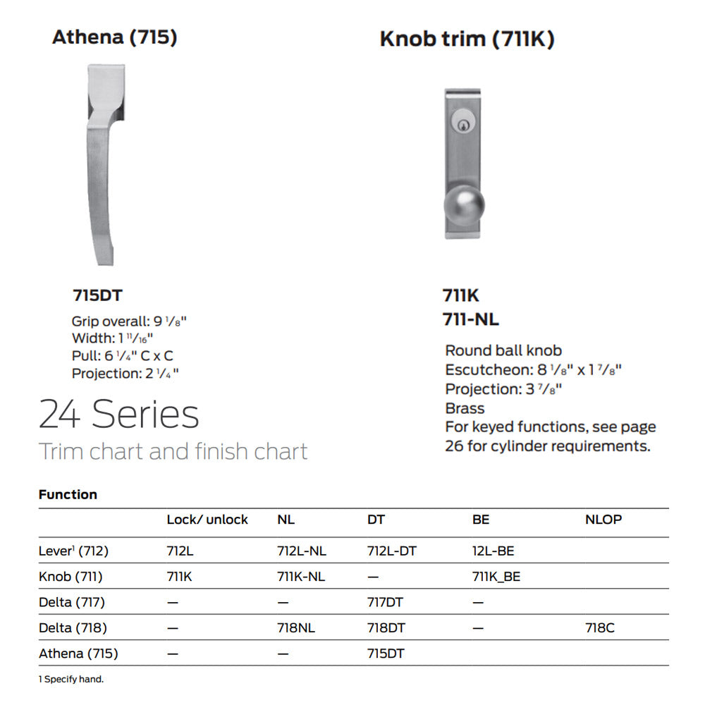 Enhance your door security and design with the Falcon Exit Device Trim for Knob Trims — a premium solution engineered for smooth performance, fast installation, and timeless style. Whether you're updating existing openings or outfitting new construction, this trim series is built to perform in demanding commercial and institutional environments.
