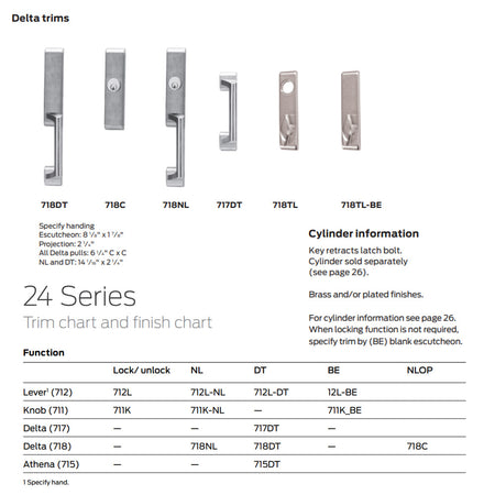 Falcon 717DT-R/V - Dummy Pull Trim Delta Trim Design for 24 Series Rim and Surface Vertical Rod - Field Reversible