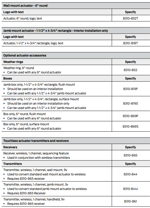 The 8200 Series includes features that improve accessibility for people with disabilities and the elderly. Push ‘n’ Go opens the door automatically upon activation of the push bar, and SmartLatch provides additional closing force for security and peace of mind. Additionally, the 8200 Series detects obstacles to stop and reverse door direction when necessary and learns opening position angles to eliminate wall and door damage.