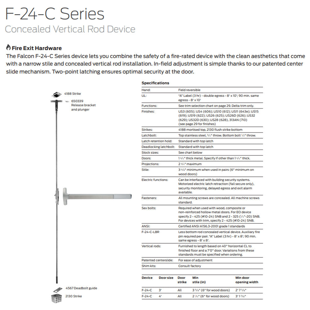 TITLE TAG: Falcon F-24-C-EO Series Exit Only - Concealed Vertical Rod Exit Device - Fire Rated