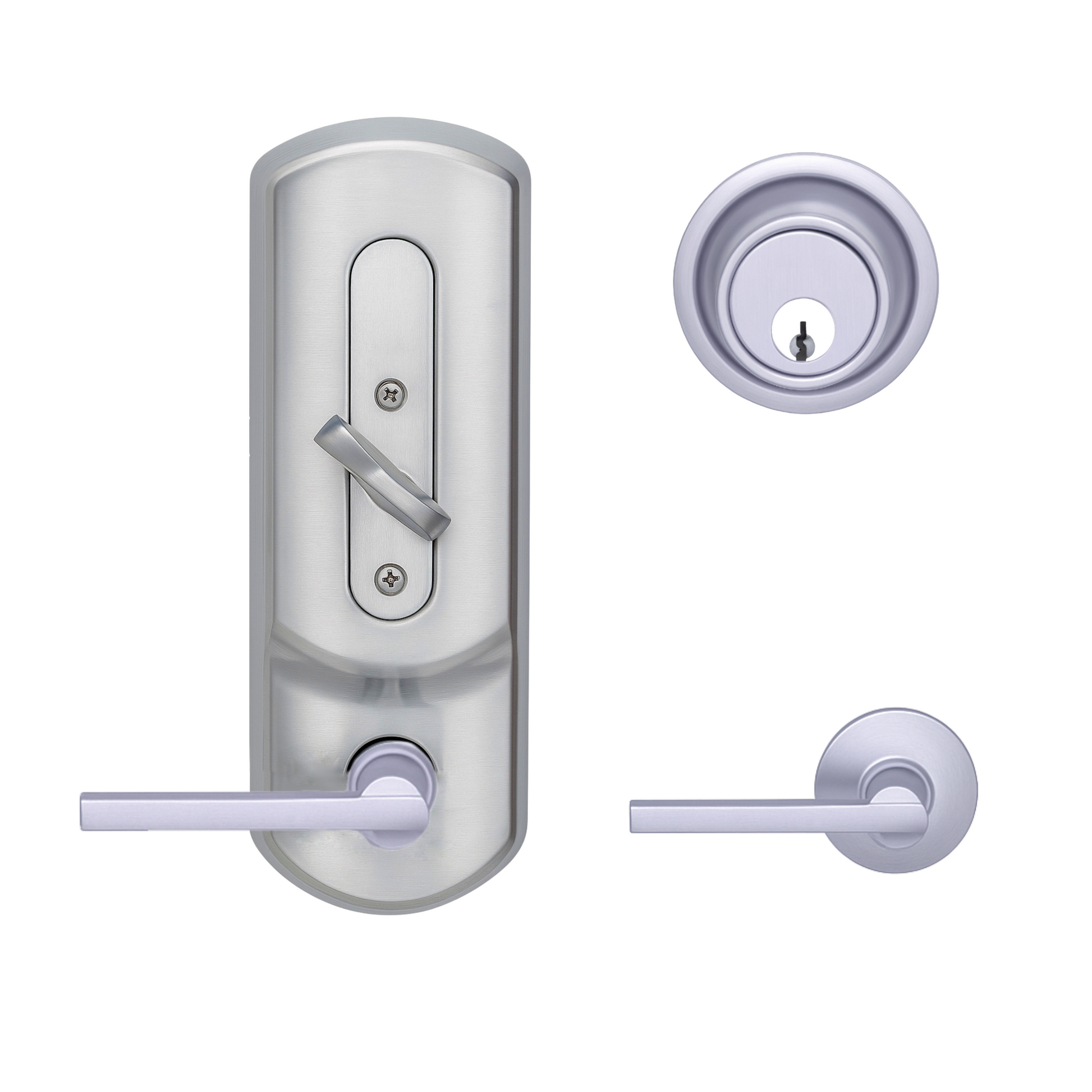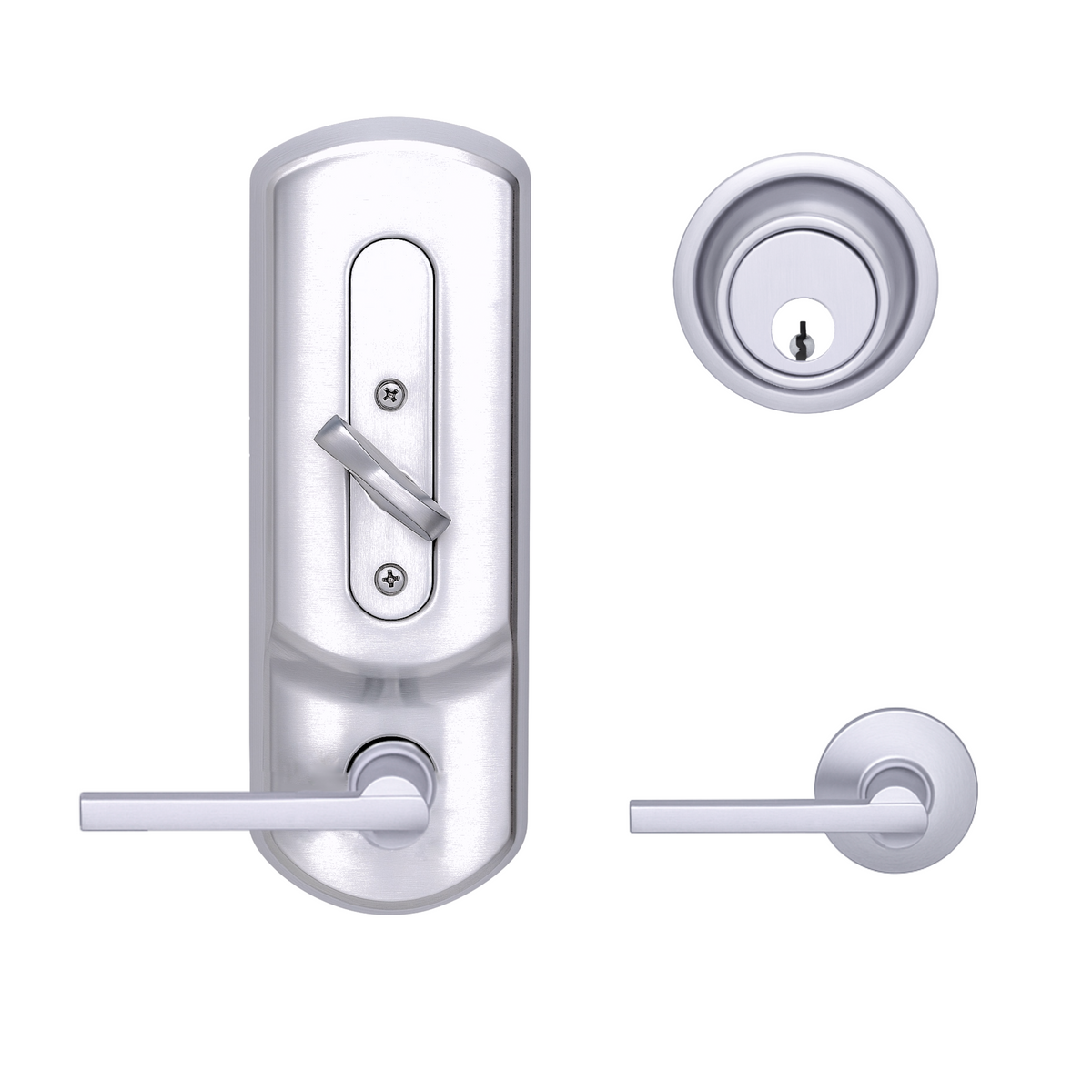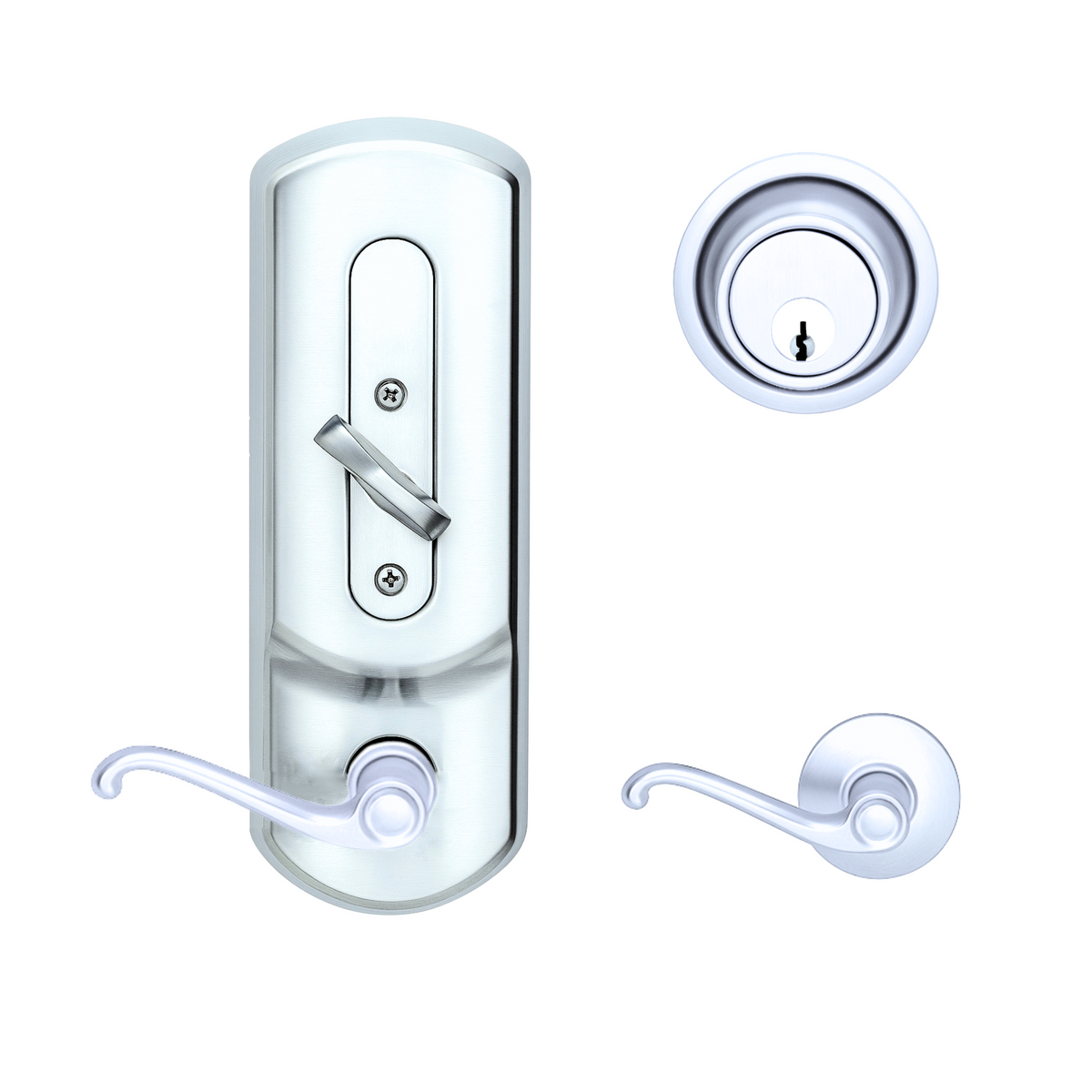 • Exterior has the appearance of a tubular lock and deadbolt