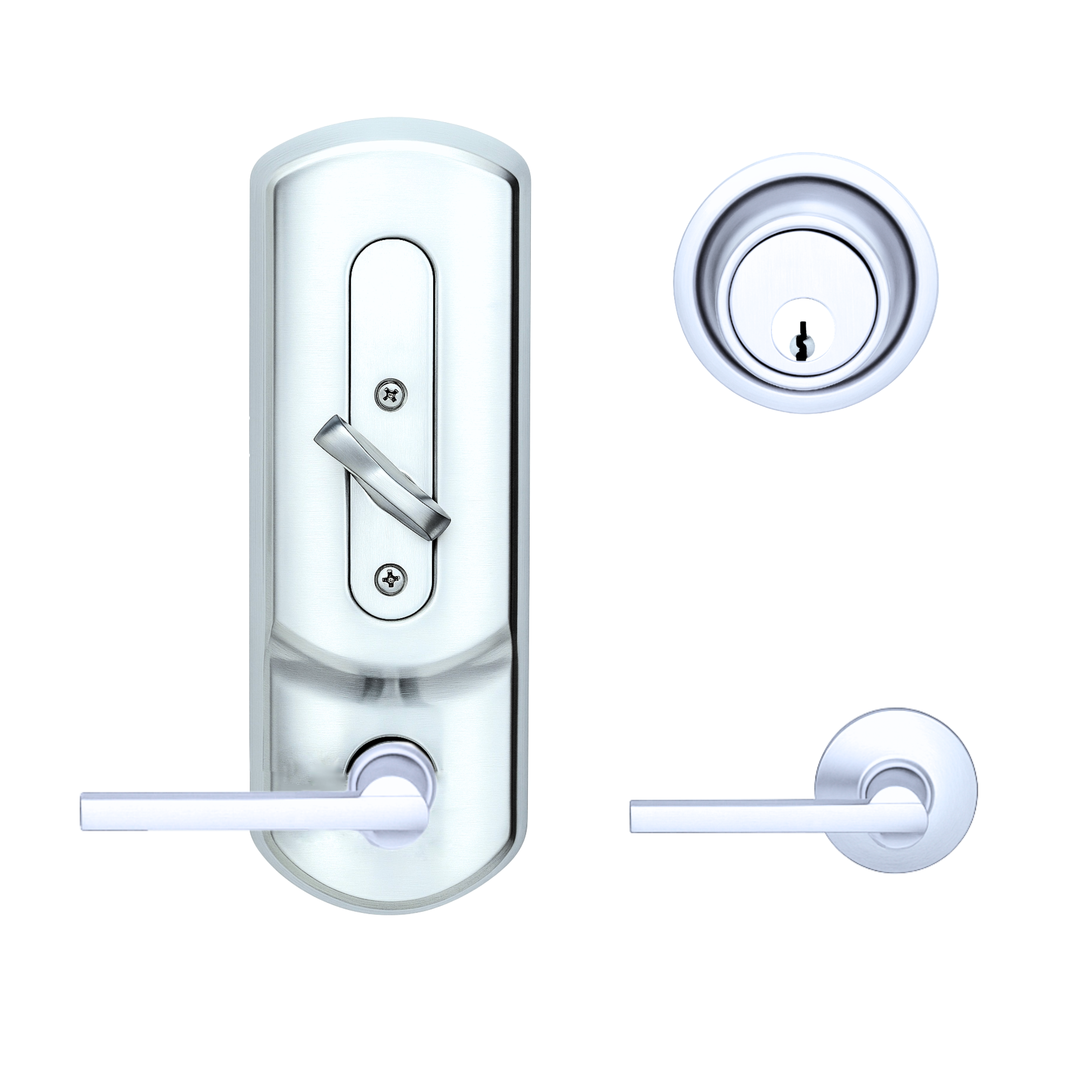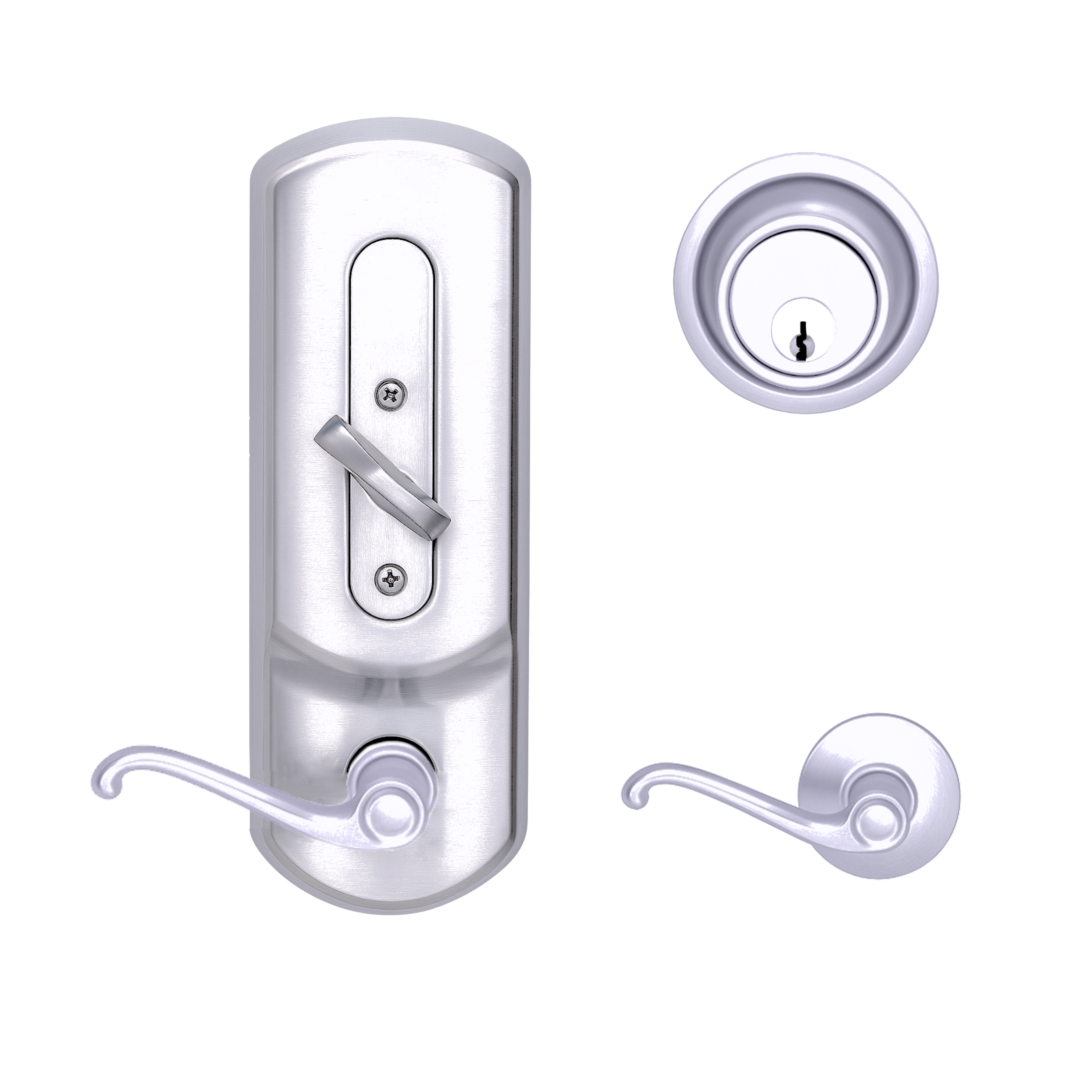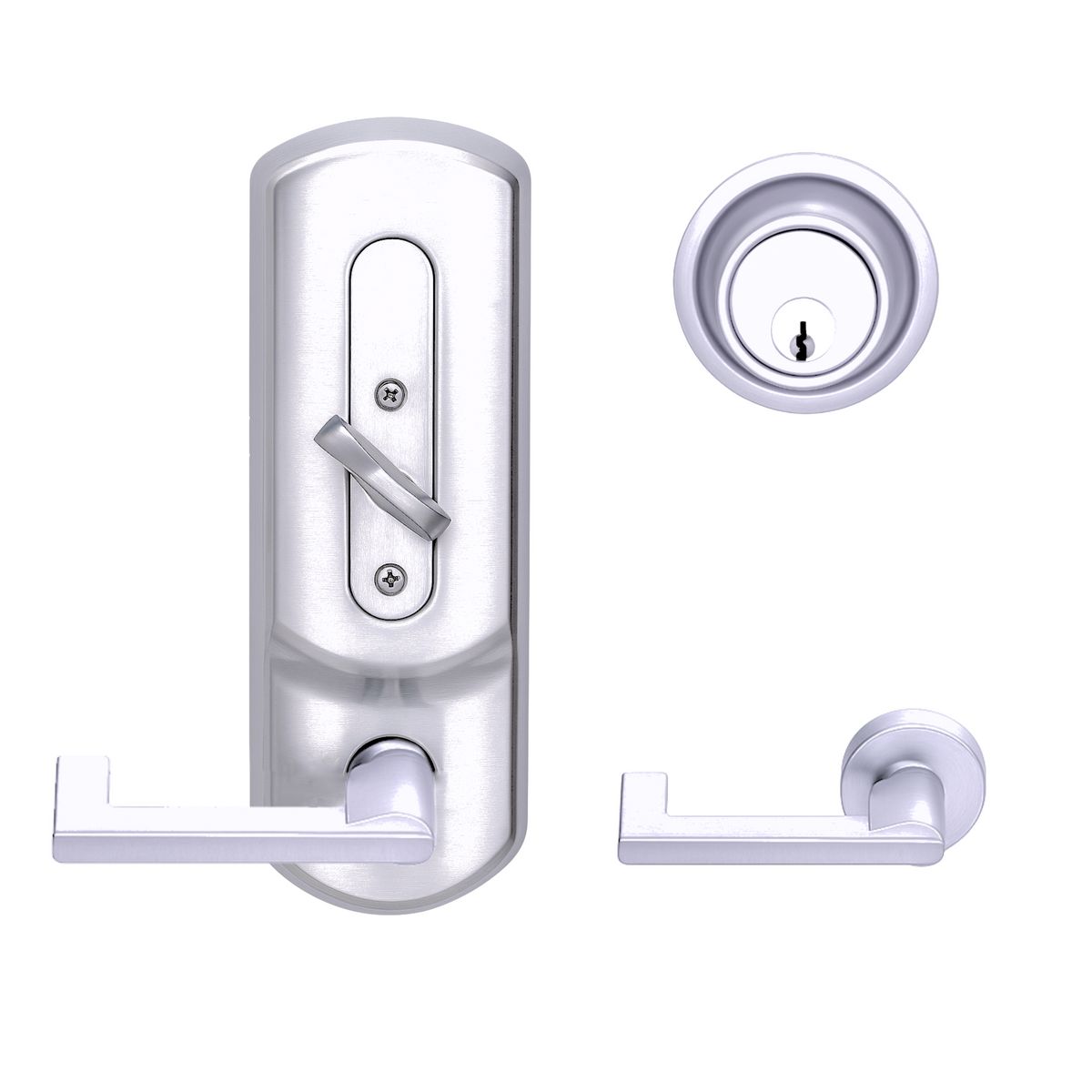 • Exterior has the appearance of a tubular lock and deadbolt