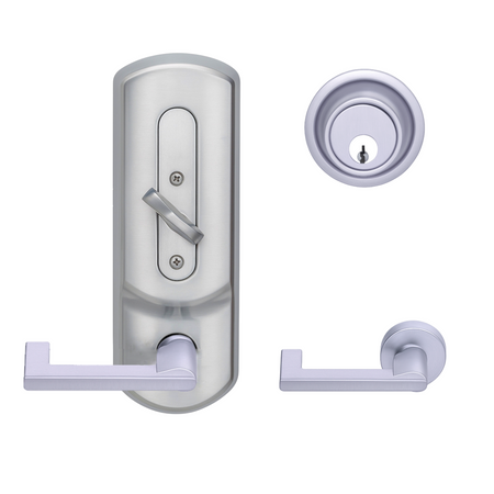 The H2 Series interconnected locks provide a single-motion egress and are ideal for multi-family, mixed-use and public restroom applications. The H2 Series features a single-motion egress (retracting both the latch and deadbolt simply by rotating the inside lever) to meet Life and Safety code requirements, while exceeding BHMA Grade 2 requirements for operational usage, security, cycle and finish.