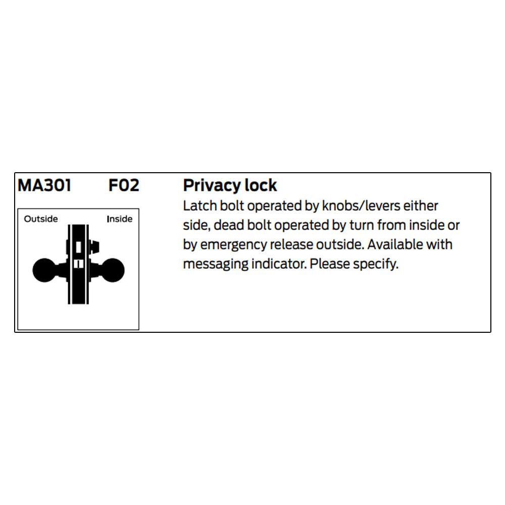 TITLE TAG: Falcon MA301 Privacy Lock - Grade 1 Non-Keyed Mortise Lock
