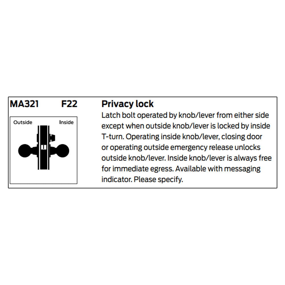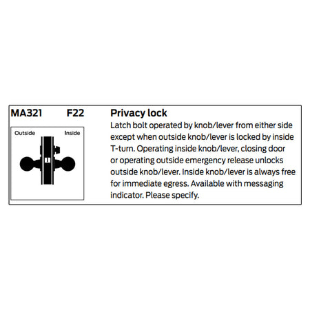 TITLE TAG: Falcon MA321 Privacy - Grade 1 Non-Keyed Mortise Lock