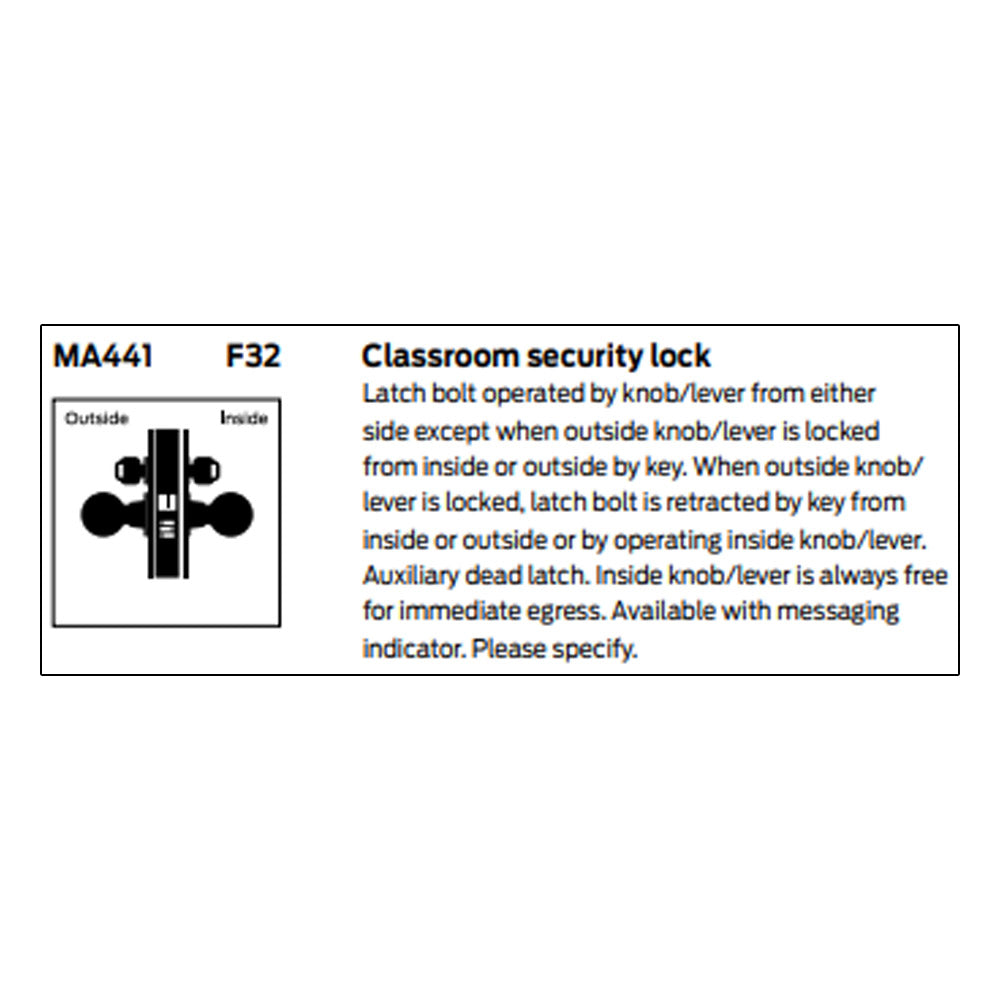 TITLE TAG: Falcon MA441 Classroom Security Lock - Grade 1 Double Cylinder Mortise Lock