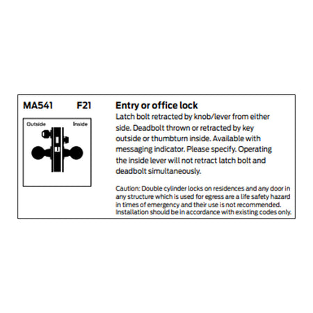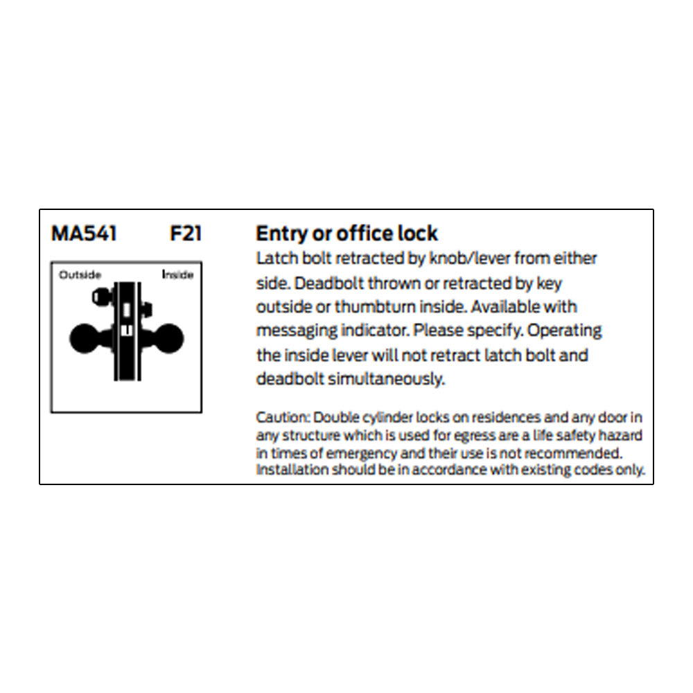 TITLE TAG: Falcon MA541 Entry/Office Lock - Grade 1 Keyed Mortise Lock with Deadbolt